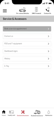 For eksisterende ejere tilbyder Porsche Centre Egypt app uovertruffen bekvemmelighed. Book din næste serviceaftale med et enkelt klik, hvor du får et klart overblik over ledige datoer, tider og den forventede varighed af den valgte service. Udforsk samtidig vores fleksible finansieringsløsninger; opnå din drømmebil med en udbetaling fra kun 20% og bekvemme afbetalinger over op til fem år. Har du en bil, du ønsker at bytte ind? Upload billeder af dit køretøj for hurtig godkendelse, hvorefter det bliver synligt for alle app-brugere. Du kan også gennemse et kurateret udvalg af autoriserede brugte Porsche-modeller, der venter på at finde en ny ejer.