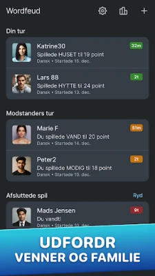 Wordfeud forbinder dig med ligesindede ordentusiaster fra hele verden. Find dine venner og start en leg, eller lad Wordfeud automatisk sætte dig op mod en ny modstander for en spontan og udfordrende kamp. Undervejs kan du udveksle tanker og vittigheder i den indbyggede chat, hvad enten du vil rose en god strategi eller drille lidt med en heldig placering. Med understøttelse af ordbøger på adskillige sprog, herunder dansk, engelsk, tysk og spansk, er Wordfeud en sand international platform. Praktiske notifikationer sikrer desuden, at du aldrig går glip af din tur, og altid er opdateret på dine modstanderes seneste træk.
